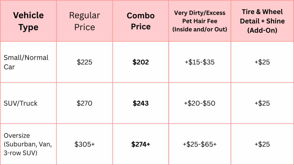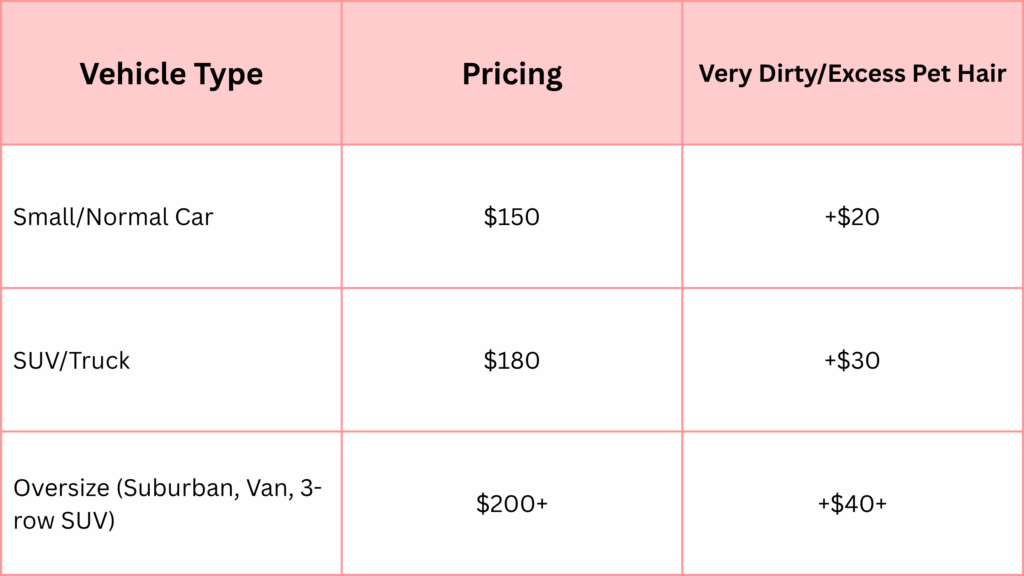 Door panels, consoles, dash, cup holders, and vents deep cleaned